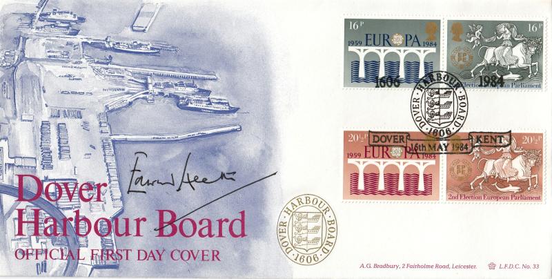1984 (05) Europa - Bradbury LFDC 33 (Dover Harbour) Official - Signed by the late Edward Heath