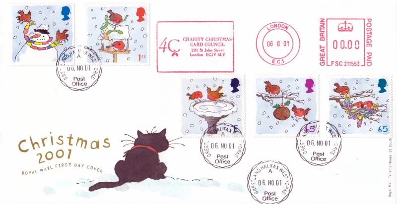 Lovelt Royal mail cover. Greetland CDS + 4C Charity Christmas Card Council Meter Mark.