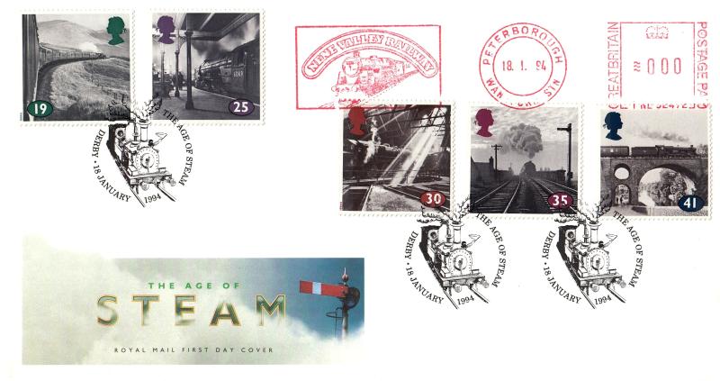Lovely Royal Mail cover............. Age of Steam, Derby H/S + Nene Valley Railway Meter Mark. Cat £35.............