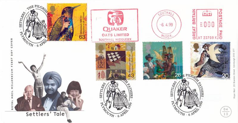 Excellent Royal Mail cover............ The Pilgrim Fathers, Plymouth H/S + Quaker Oats Meter Mark.