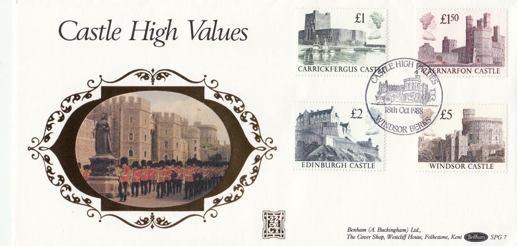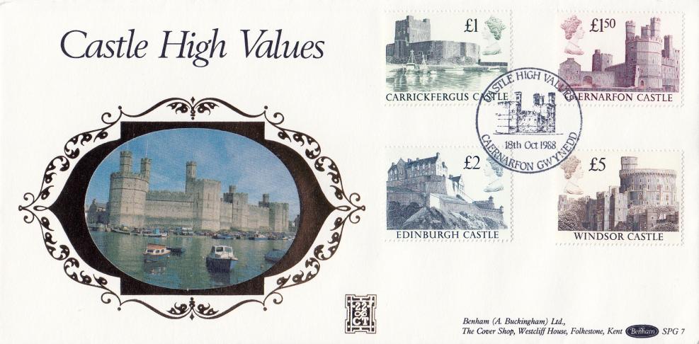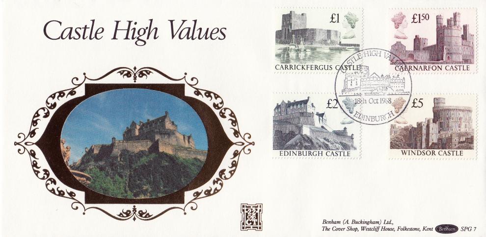 All Four Benham SPG (Special Gold) Official Covers - Carrickfergus, Windsor, Edinburgh & Caernarfon Handstamps. Catalogued at £240 for the set of four as shown.