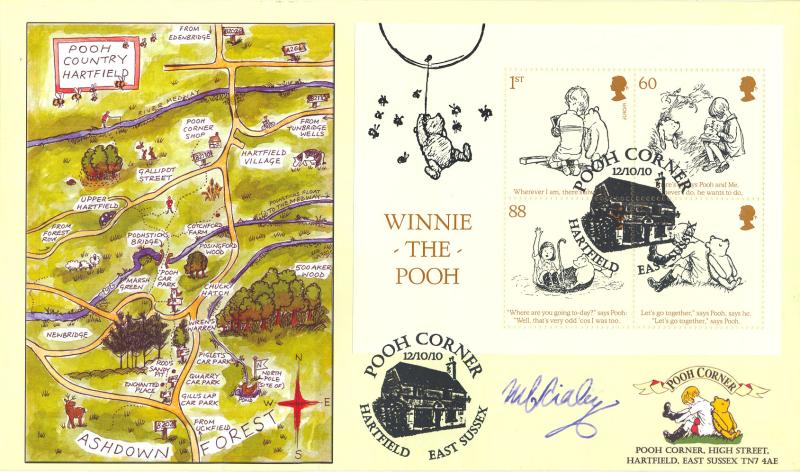 Fantastic Steven Scott 'Pooh Country Map' Official. Signed by Mike Ridley (Who has run the 'Pooh Corner' Shop at Hartfield sunce 1978).