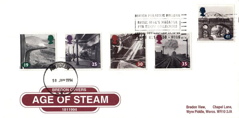 1994 (01) The Age of Steam - Bredon 'Enamel Sign' Cover - British Philatelic Bulletin - Royal Mail's Magazine For Stamp Collectors Slogan