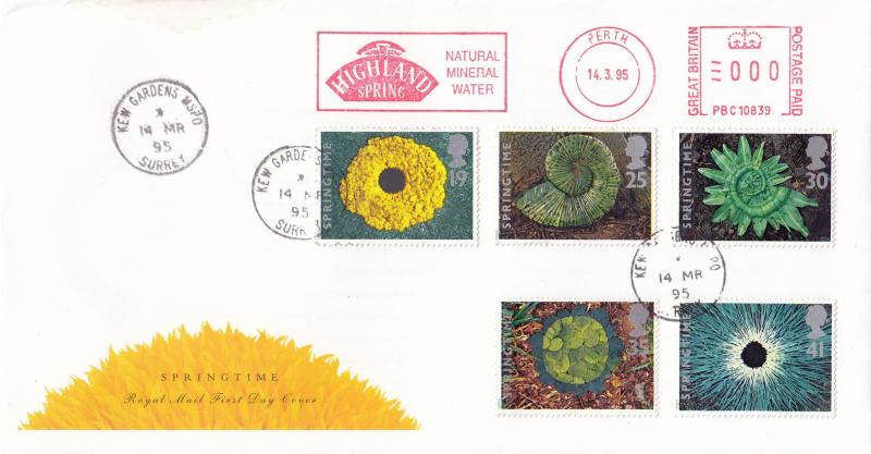 Excellent RM cover - Kew Gardens CDS + Highland Spring Natural Mineral Water Meter Mark.