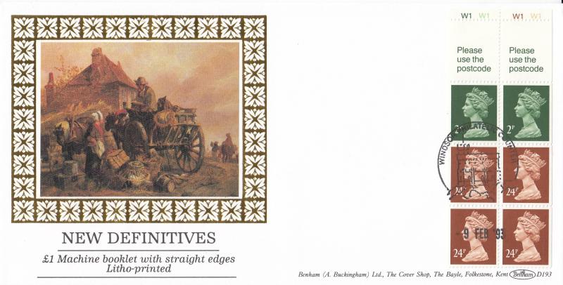 1993 (02) £1 Machine Multi-Value Booklet - Benham D193 - Cylinder No Pane - Windsor Counter H/S