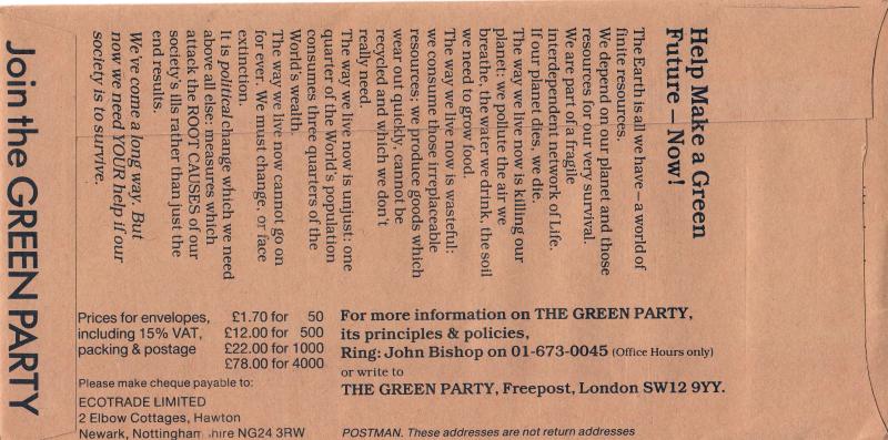Very unusual Green Party Cover. London SW1 Buckingham Palace 'Frontage' Philatelic Counter H/S. Lots of info on the rear...........