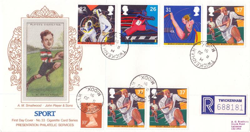 Excellent Cigarette Card PPS Silk. Twickenham CDS (the home of English Rugby).... Serviced by Bradbury.....
