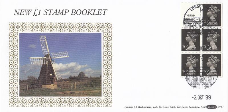 1989 (10) £1 Booklet - Benham D117 - London SW1 Buckingham Palace Front View Counter H/S