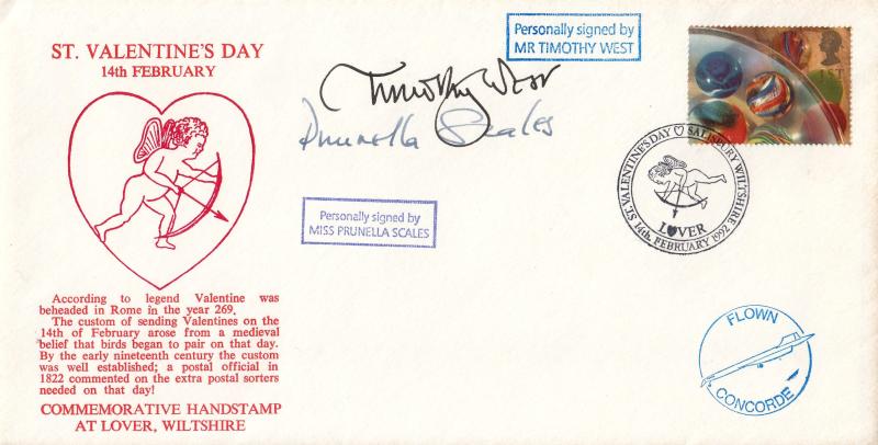 1992 (02) Valentines Day - Cambridge Stamp Centre 'Special' - Signed by Timothy West & Prunella Scales
