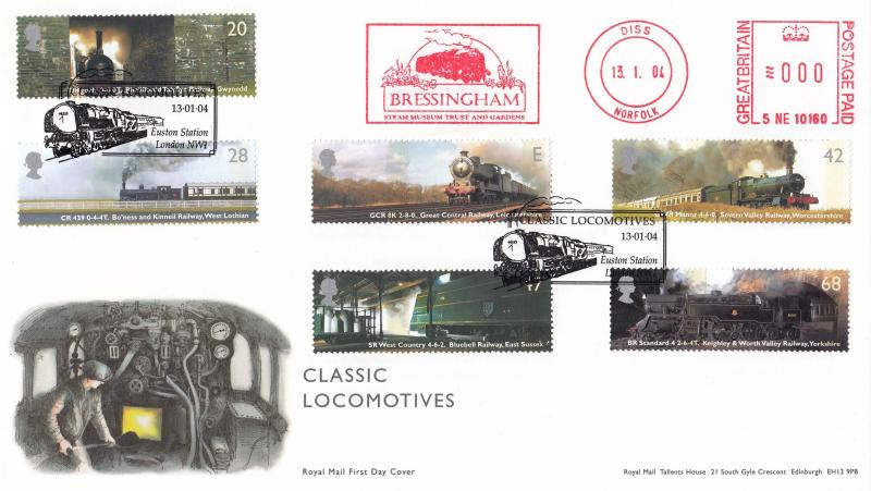 Excellent Royal Mail cover............. Euston Station H/S + Bressingham Steam Museum Trust and Gardens Meter Mark.