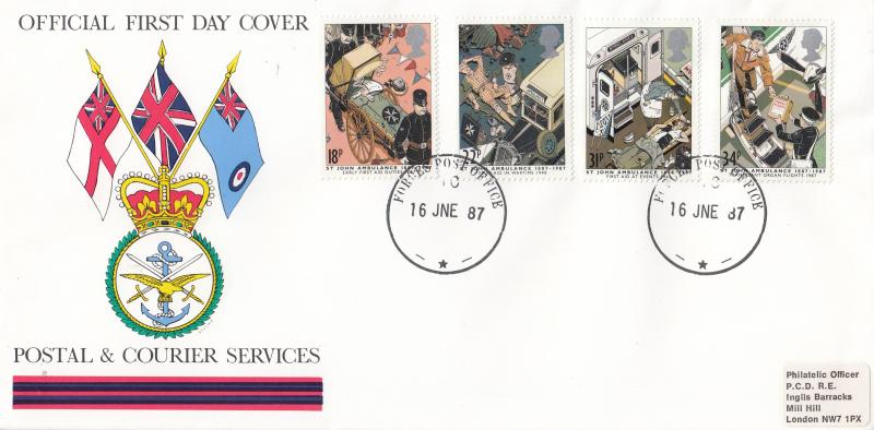 1987 (06) St John Ambulance - Postal & Courier Services Cover - Forces Post Office 10 CDS