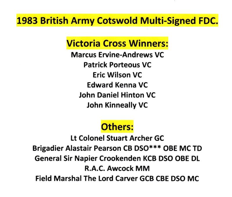 1983 (07) British Army - Cotswold - Duke of York Military School H/S - Multi-Signed by SIX Victoria Cross Holders & 5 Others